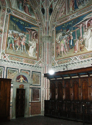La sacristía, a la que se accede por la derecha del presbiterio, está decorada con un ciclo de frescos con escenas de la vida de San Benito de Spinello Aretino, fechados en 1378 y de fuerte influencia de Giotto.