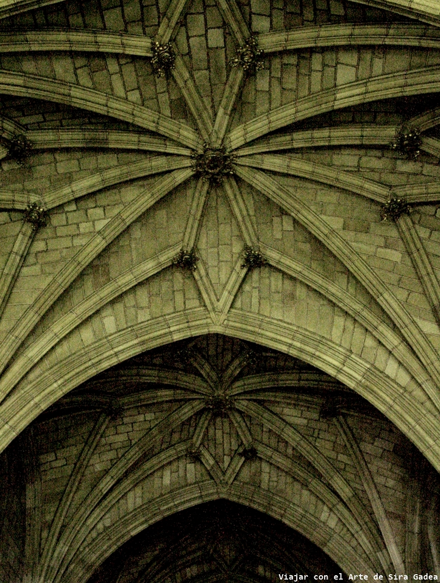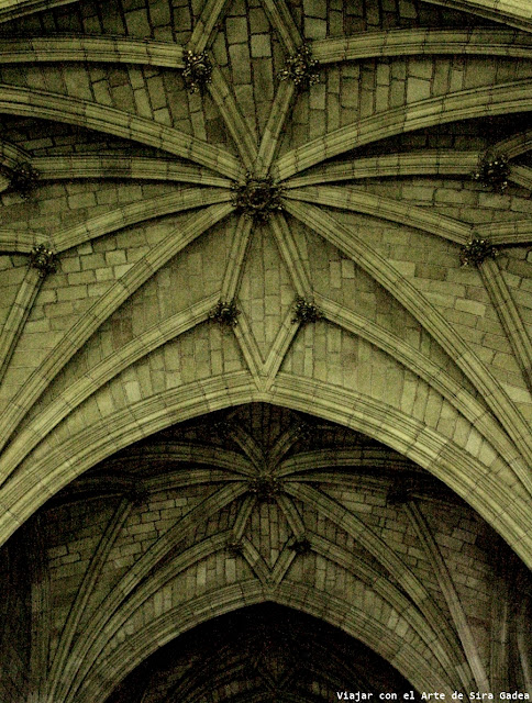 medio punto entre robustos contrafuertes, cubierta de compleja crucería gótica