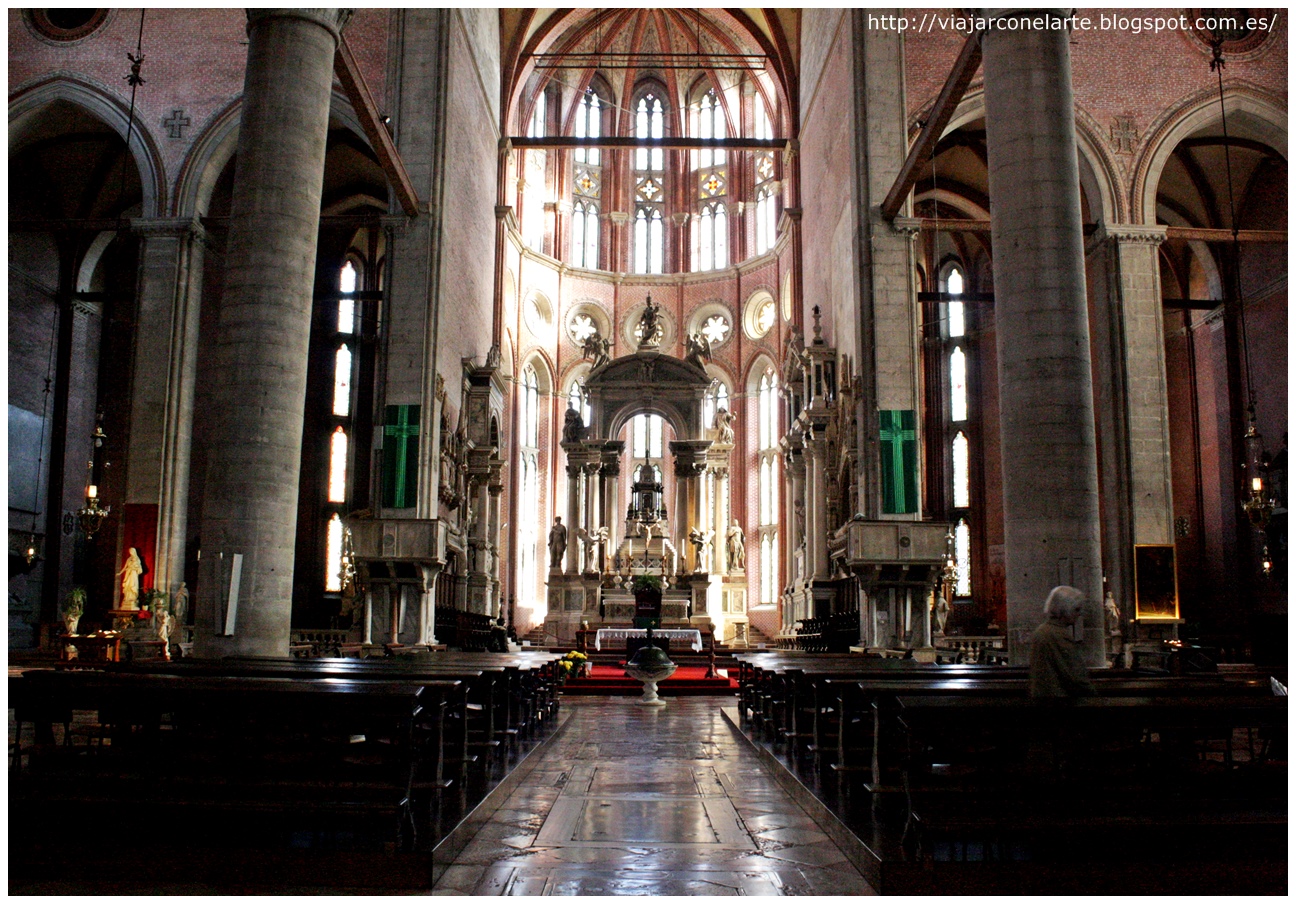 La Basilica dei Santi Giovanni e Paolo es maravillosa, espectacular, casi infinita, plagada de obras de arte, con una luz mágica de mañana que inunda el templo desde la cabecera, elegida por muchos de los dogi venecianos, nada menos que veinticinco, como última morada, con mausoleos que colmatan las naves laterales y las capillas absidiales, con una riqueza funeraria sólo comparable con la de Santa Maria Gloriosa dei Frari, el otro gran panteón veneciano.