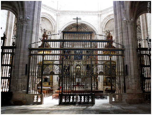 Las rejas que separan el crucero del cuerpo de la iglesia también son de esta época, obra de Juan Rodríguez.