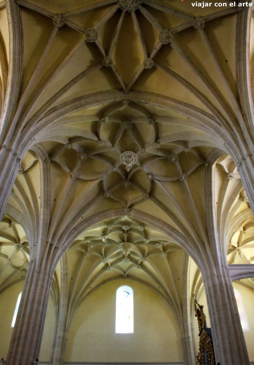 Las bóvedas del templo se sustentan sobre pilares fasciculados a los que se adosan finas columnillas de capiteles vegetales, y en las naves laterales se corresponden con medios pilares de iguales características, con contrafuertes al exterior.