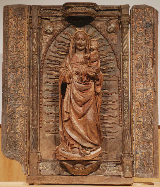 Cuenta con un retablo con cuerpo central con la Virgen y el Niño que sigue el modelo del icono bizantino de Nuestra Señora del Pópulo que se venera en la basílica de Santa María la Mayor de Roma. Aunque la advocación sea a la Inmaculada Concepción, un aparente contrasentido, éste se explica porque en las fechas de la fundación todavía no estaba fijada la iconografía de la Purísima. Está rodeada de mandorla formada por rayos solares apocalípticos y cubierta por un doselete con cabezas de angelotes a ambos lados y también en la repisa inferior.