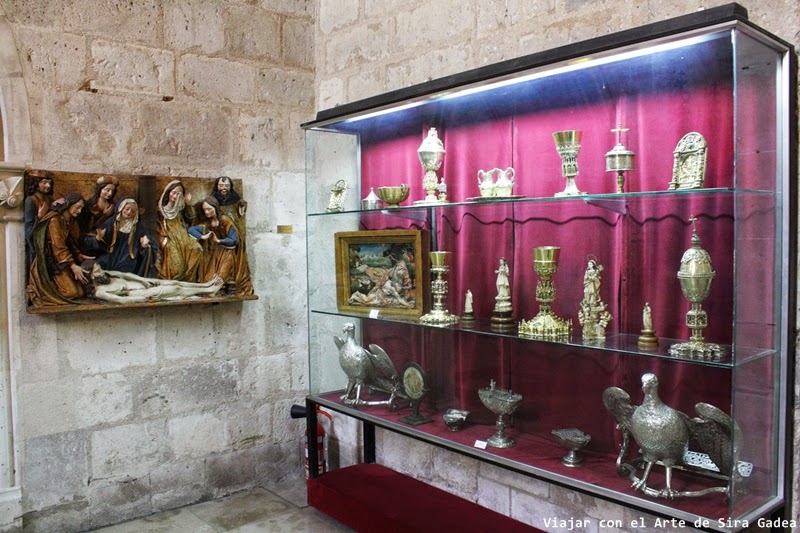 De las obras expuestas destacan, unas tablas hispano-flamencas del siglo XVI con la Visitación flanqueada por los santos Mateo y Marcos en el momento de escribir los Evangelios procedentes de la iglesia de Nuestra Señora de La Asunción de La Seca y atribuidas al Maestro de Portillo, una vitrina con cruces, cálices, copones, navetas góticas y renacentistas, una cruz de cristal de roca, marfiles… un Llanto sobre Cristo Muerto de Alejo de Vahía de ha. 1500, quizá de la misma procedencia que los Santos Juanes del mismo autor expuestos en la capilla de san Llorente, o una impresionante cabeza decapitada de san Juan Bautista de Juan de Juni de 1545.