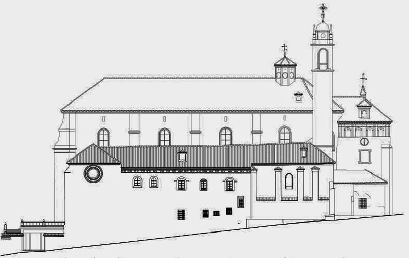 de Vilches del primer tercio del siglo XVII, la fachada occidental del conjunto, con la iglesia y el claustrillo.