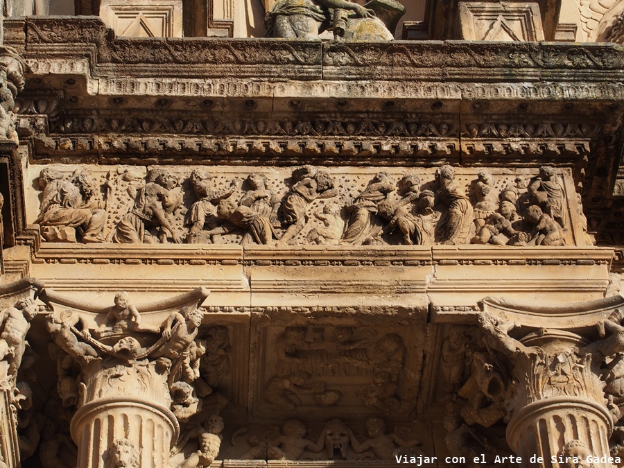 cuerpos están separados por un entablamento con labor escultórica en el friso